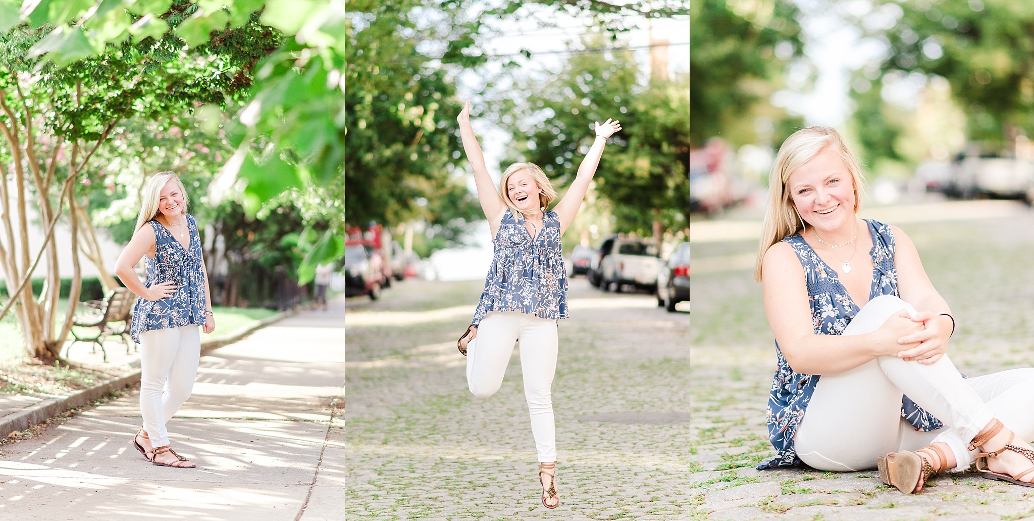 For her session we met up at Libbie Hill Park getting images with the skyline and beautiful tree lined paths. We then walked around Church Hill in downtown Richmond getting a more classic southern city vibe. We walked down cobble stone streets, found a perfect white painted brick wall and took advantage of all the glowie light. Our final stop was the Canal Walk which is one of my favorite parts of the city. The concrete paths enabled us to get images that were full of light even as the sun snuck away. I love each and every one of these images! Narrowing it down to just a glimpse was SO HARD.